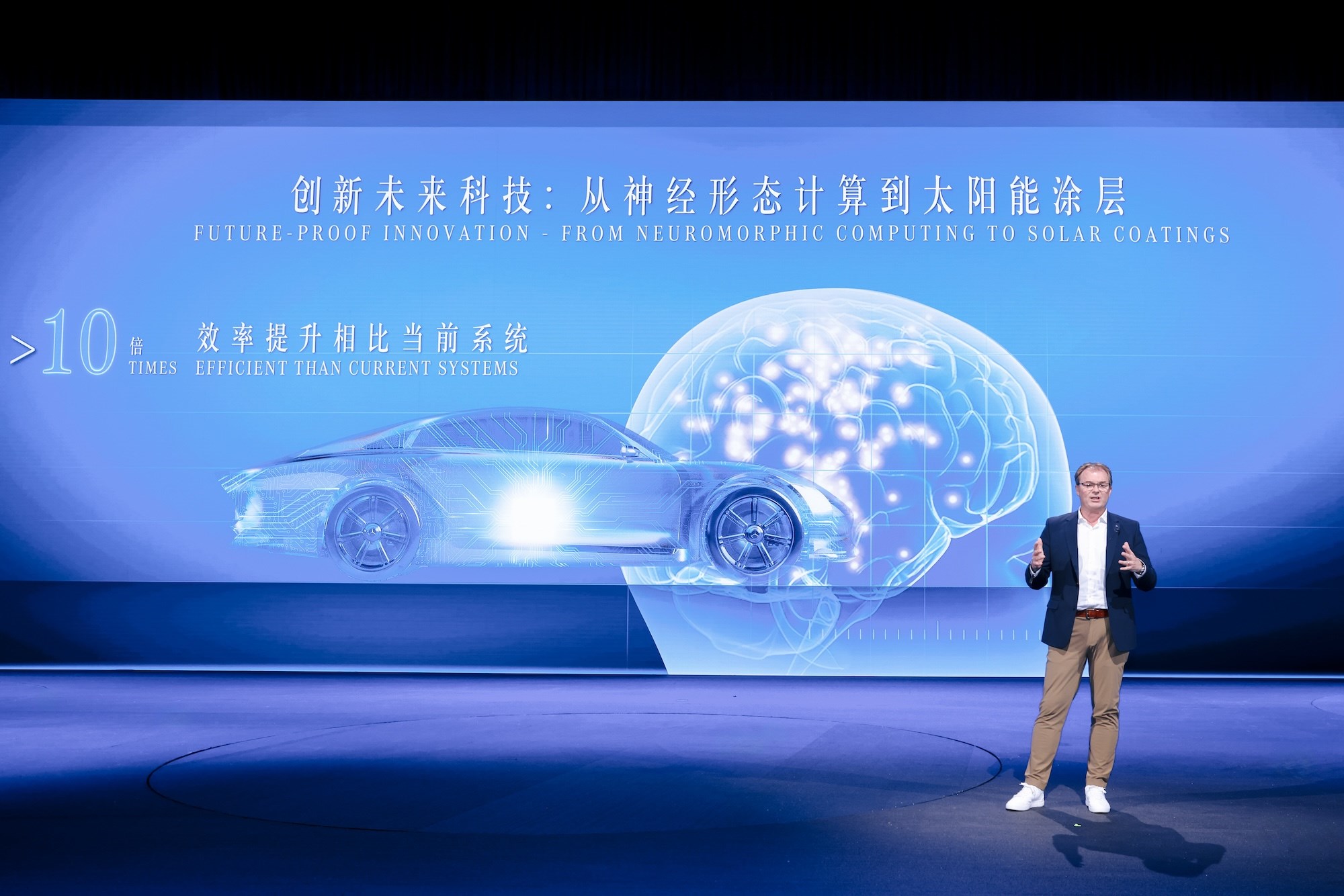 能效領(lǐng)域,梅賽德斯-奔馳呈現(xiàn)800伏電氣架構(gòu)、兩擋變速箱等能效科技,這些科技也將在未來的奔馳電動車型上搭載。有別于傳統(tǒng)機(jī)械制動的In-drive制動系統(tǒng),可以通過電驅(qū)系統(tǒng)實現(xiàn)制動,令能量回收和制動體感更舒適,也能幾乎無磨損、終身免維護(hù)。涂層僅5微米厚的新型太陽能涂層組件,在11平方米的面積(相當(dāng)于一輛中型SUV的表面積)下,在北京的光照條件下每年可產(chǎn)生長達(dá)14000公里的續(xù)航。智能化時代,算力成為了電動車的另一大耗電來源,而神經(jīng)形態(tài)計算有可能將自動駕駛中數(shù)據(jù)處理所需的能耗減少90%,VISION EQXX能效概念車則是全球首款應(yīng)用神經(jīng)形態(tài)計算的可合法上路車輛。