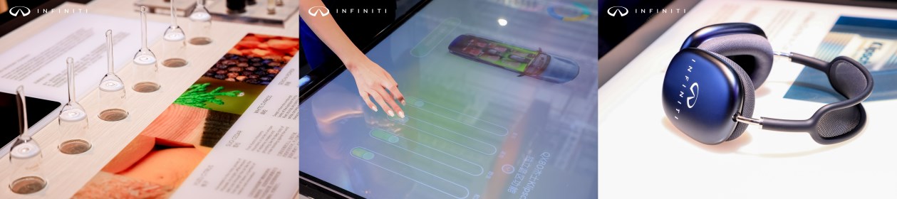 展臺(tái)中央?yún)^(qū)域采用了超大面積的瀑布式連屏,帶來流光溢彩的沉浸式光影,與展車交映生輝,令人一見傾心。同時(shí),英菲尼迪聯(lián)合法國個(gè)性化香氛定制品牌——Maison 21G Paris,打造品牌香氛體驗(yàn)區(qū),精妙調(diào)香沁人心脾;聯(lián)合Klipsch杰士音響打造品牌聲音體驗(yàn)區(qū),澎湃音效令人沉醉;更有品牌元素定制的點(diǎn)心和飲品,色味俱佳撩動(dòng)味蕾。