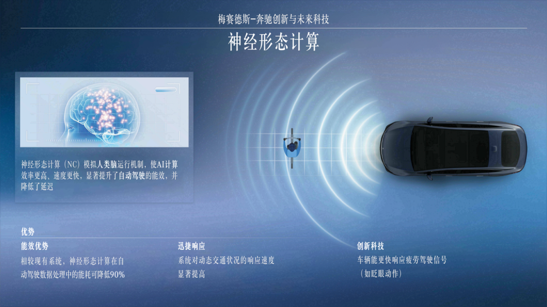 在車展開幕前一天的梅賽德斯-奔馳品牌科技日上,率先帶來了全新純電長軸距CLA和Vision V概念車的全球首秀,并展示了梅賽德斯-奔馳在神經(jīng)形態(tài)計算、In-drive制動系統(tǒng)、太陽能涂層等前沿科技成果。