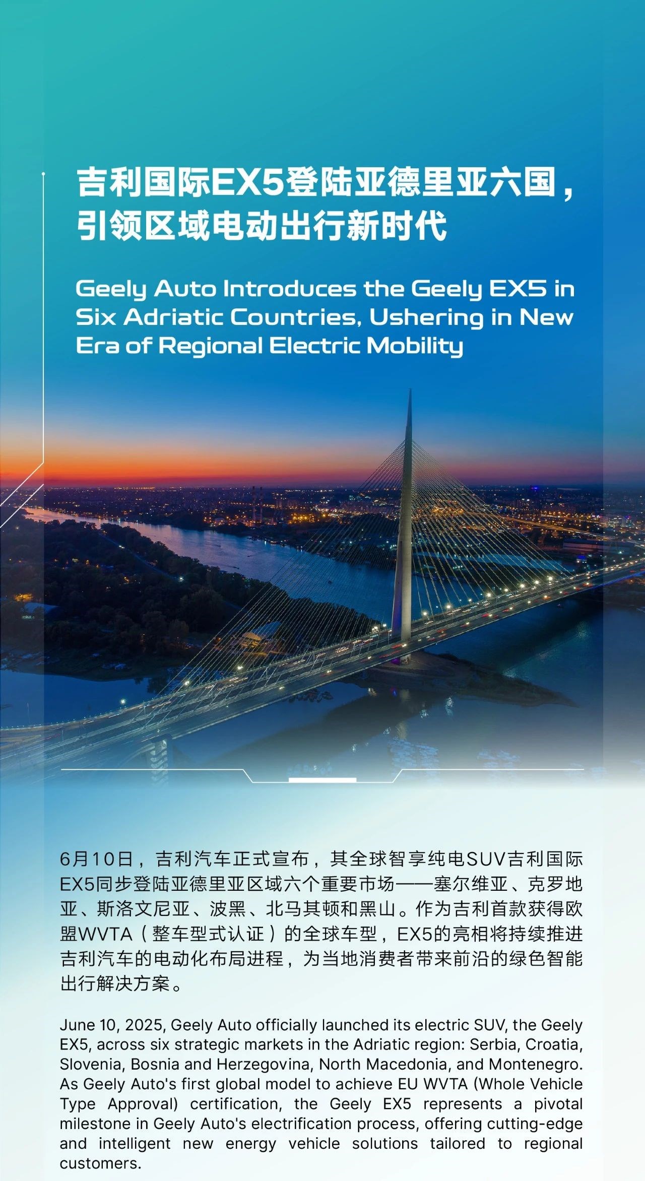 吉利國際EX5登陸亞德里亞六國